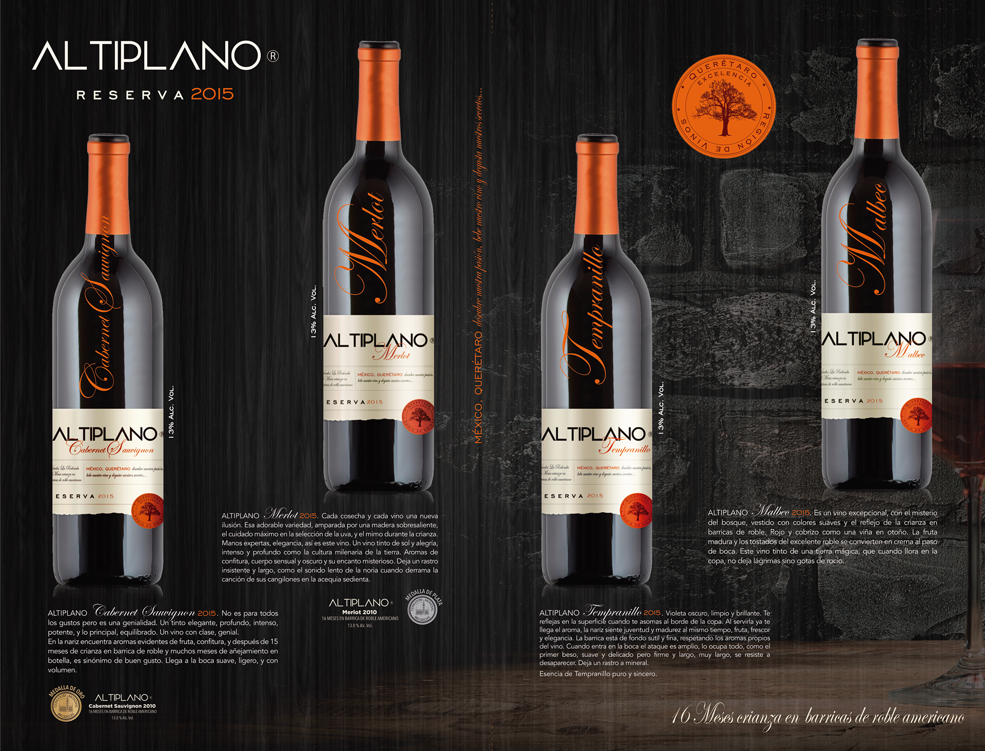Línea completa de Vinos Altiplano para Viñedos La Redonda, Qro.
